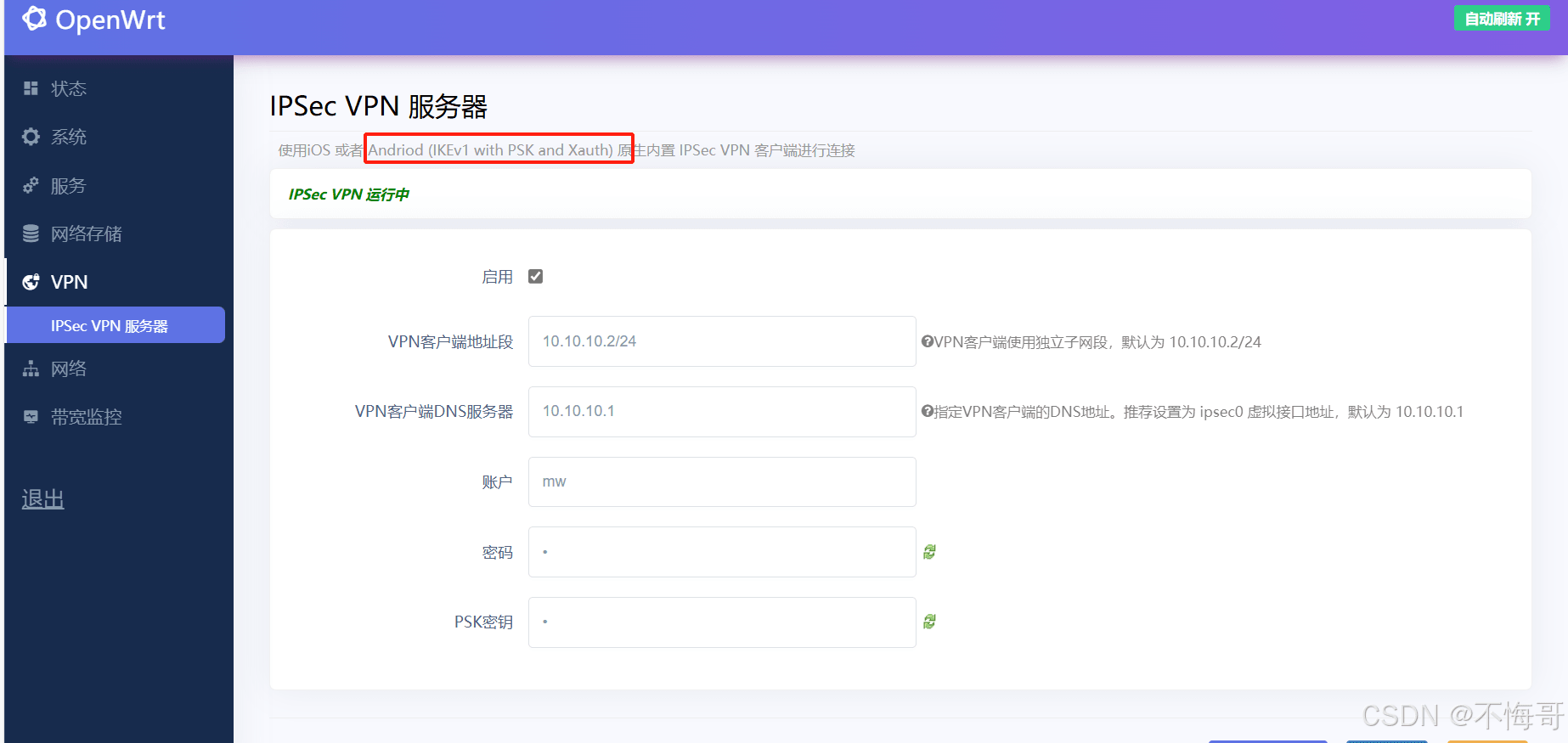 ipsec.secrets配置psk,服务器和客户端psk要保存一致