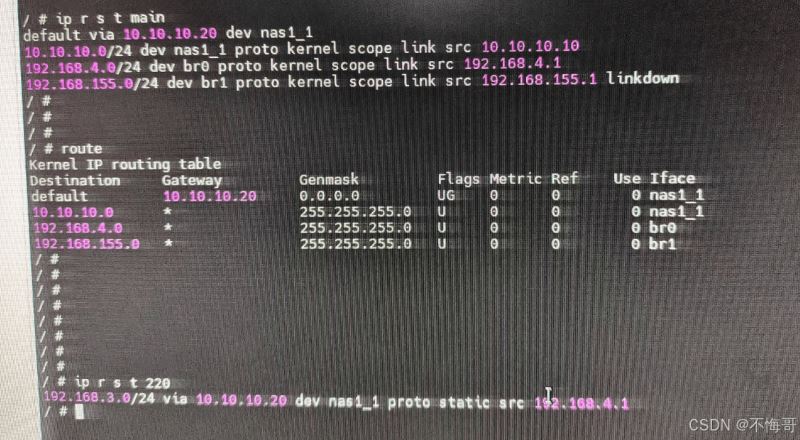 我们简单测试一下:发现只能ping通网关,2台路由器下面的lan侧设备不能互相ping通,之前怀疑策略路由有问题,命令如下