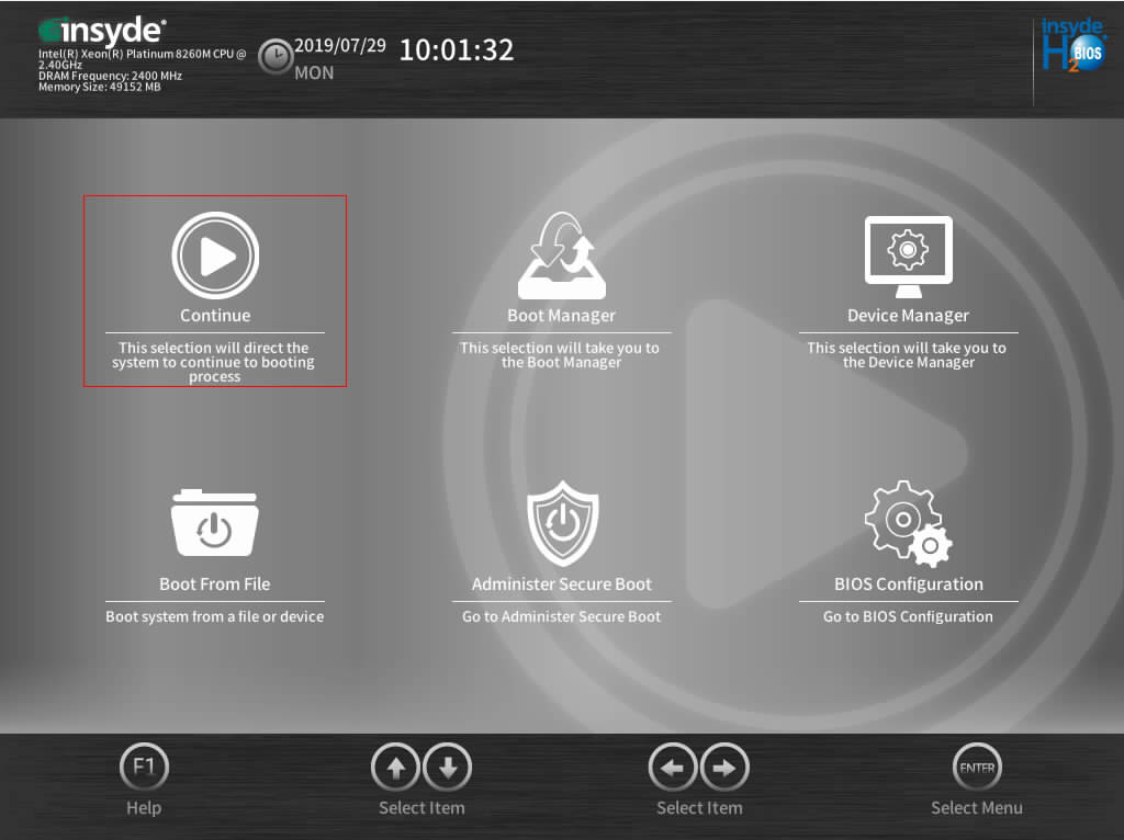 BIOS中“Boot Type”设置为“EFI Boot Type”模式时,打开的管理界面如下所述。