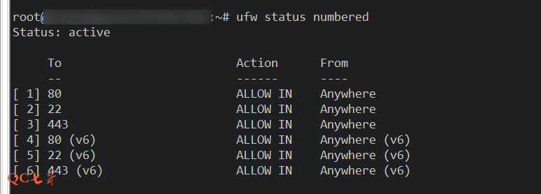 通过 ufw status numbered 可以查看规则的 numbered ,删除的时候需要通过 numbered 进行删除