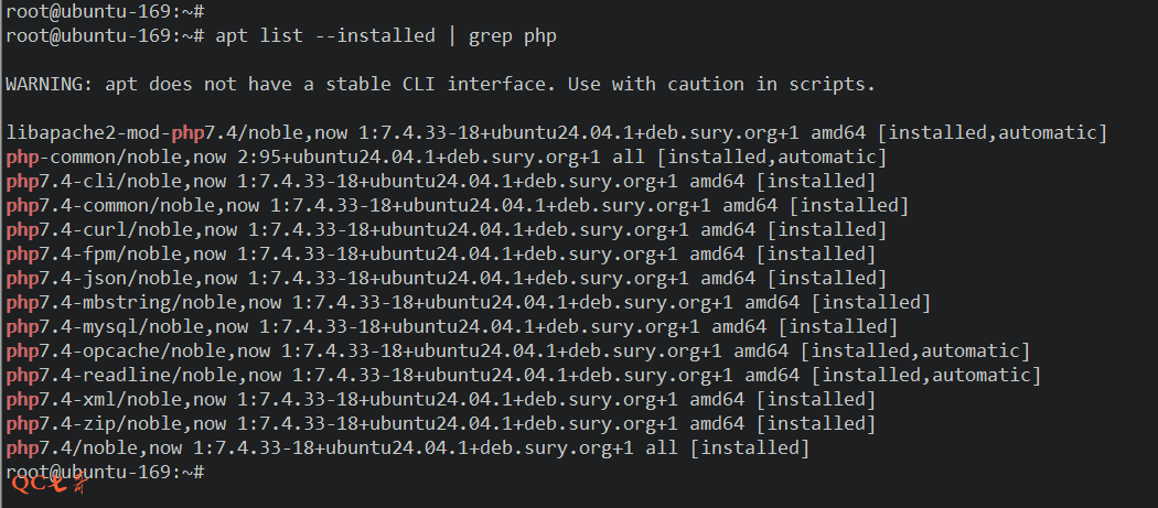 安装后可以通过 apt list --installed | grep php命令查看当前安装了哪些 php 的应用模块