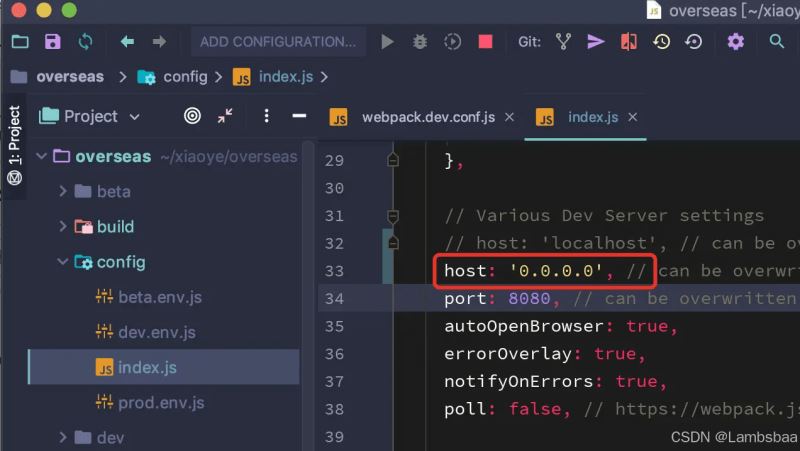 修改项目中webpack-dev-server的host配置为:0.0.0.0,这样设置后,就支持localhost和IP两种访问方式(其他非webpack-dev-server启动服务的资源文件可以使用nginx或单独创建一个服务的形式处理)
