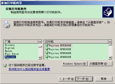 2 新机器出厂的dpk 8500e,8500eⅱ,8600e的机器通过此方式安装驱动,厂商内选择fujitsu(富士通),型号选择相应的dpk 8300e/ 8400e驱动。