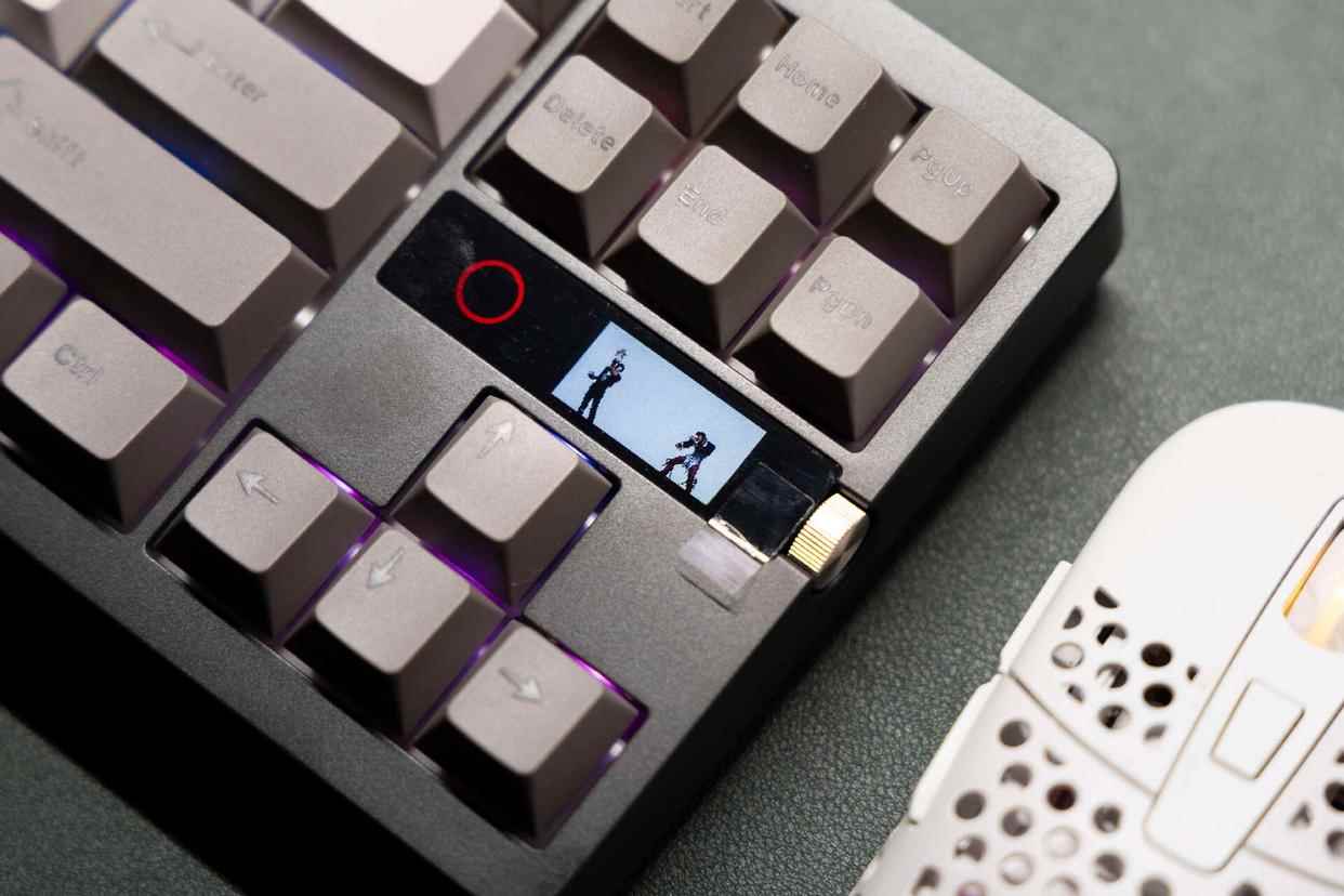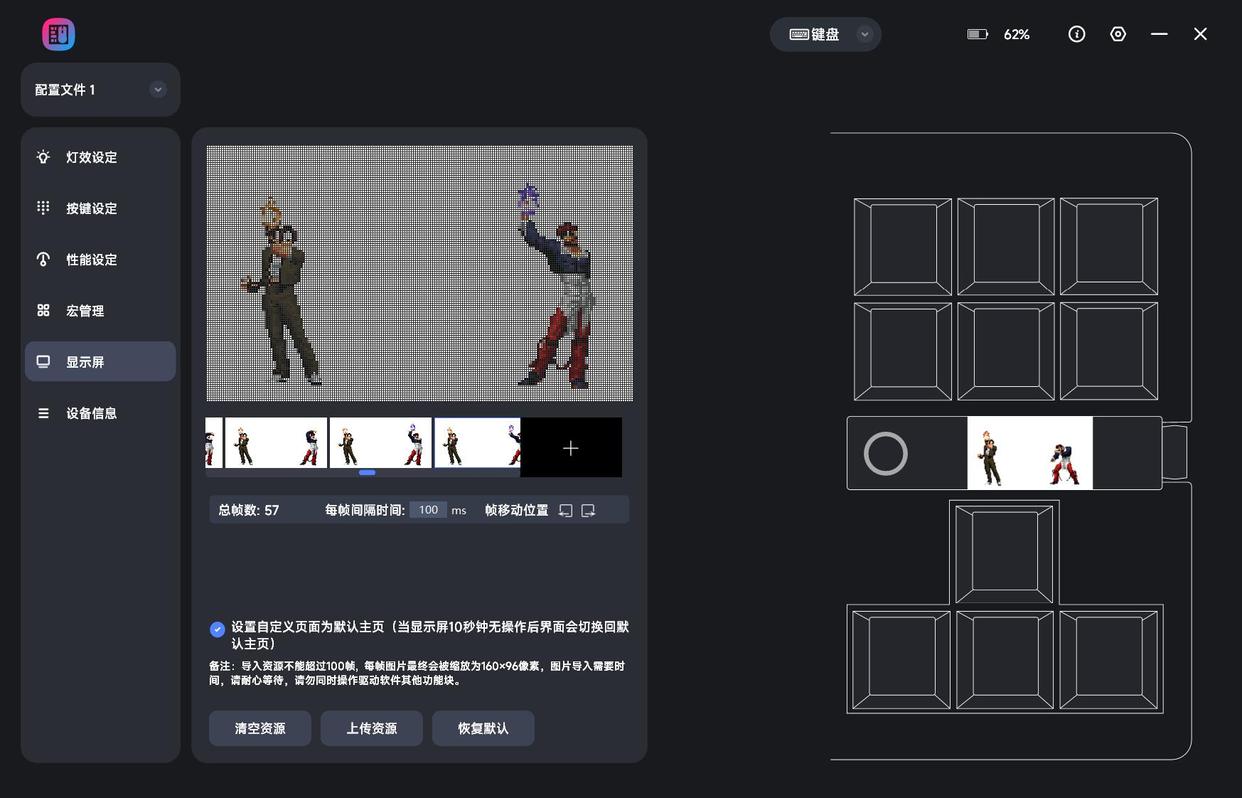 比较有意思的是,键盘这块LCD显示屏,同样支持DIY,并且还能实现数十帧动态图案播放,设置完成后需要进入有线模式上传到MK71 Pro本地。