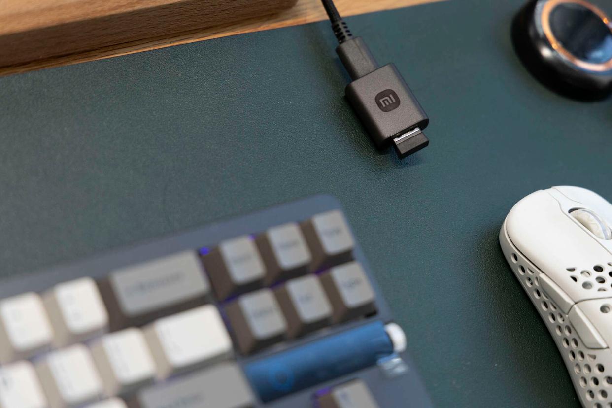 小米MK71 Pro的数据线配置有延长底座,可以让2.4G接收器更靠近键盘,减少信号干扰。