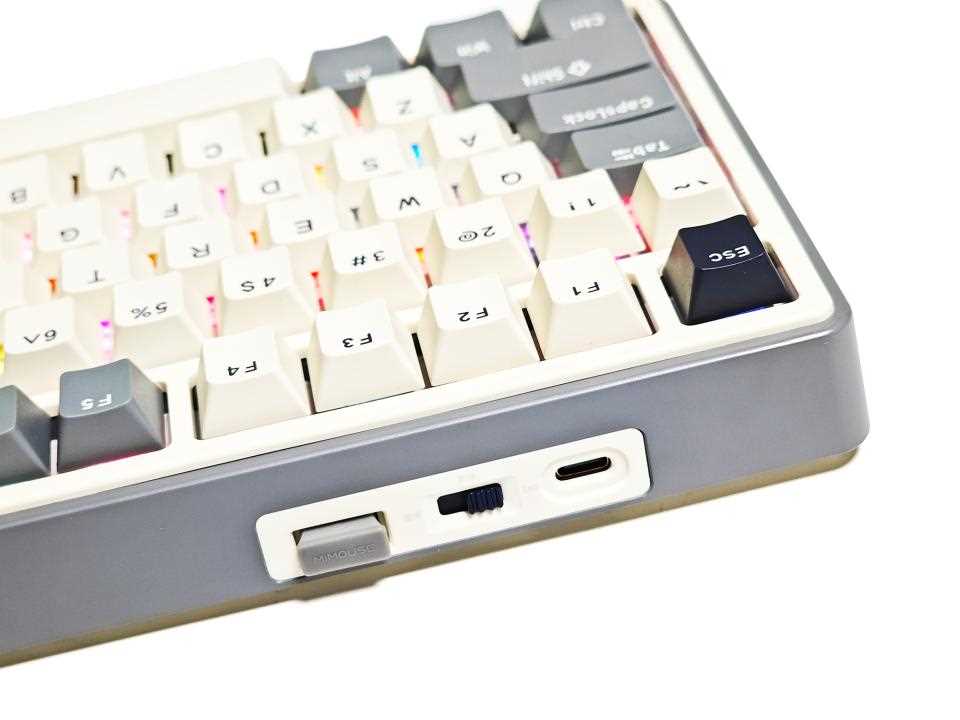 键盘自带RGB混光,并且内置多款灯效,夜晚使用时色彩斑斓的灯光以及行云流水的酷炫灯效让人流连忘返,真的非常好看。咪鼠MK87 AI机械键盘内置大容量充电电池,拥有不错的续航,充电接口为Type-C接口。