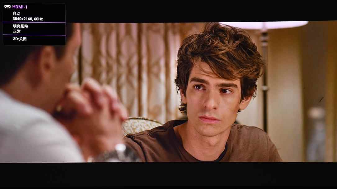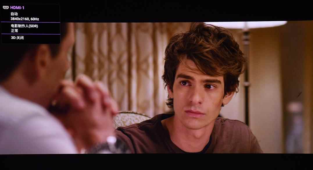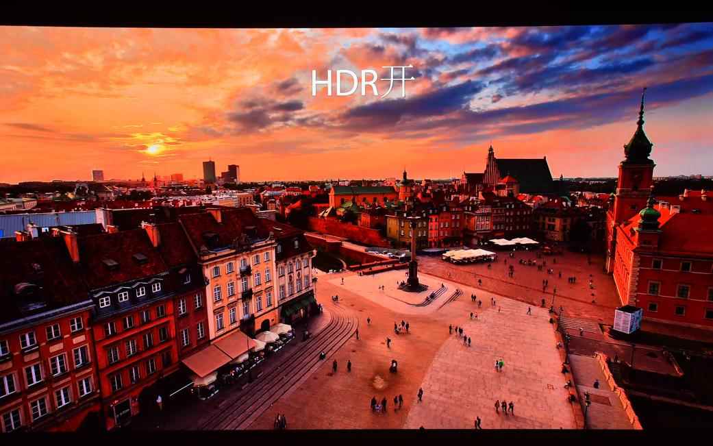 W6050提供HDR/HDR10+观影模式,能根据片源自动开启,并默认开启100%DCI-P3广色域,让用户享受4KHDR的全部原始色彩。它拥有多种模式选择,在HDR模式下,支持HDR10+/HDR10/HLG,采用电影行业统一标准的6500K色温与100%DCI-P3色域。下面就是HDR效果的实拍,可以看出HDR效果具有出色效果。