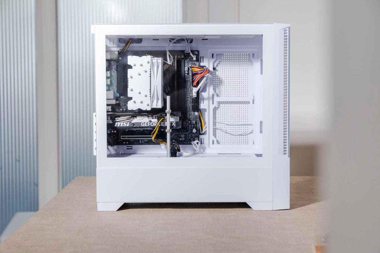 这款机箱为主流左侧透设计,侧面板支持免工具快拆设计。机箱内部风道设计合理,并安装了大量的散热风扇,兼顾了硬件展示效果和散热表现。