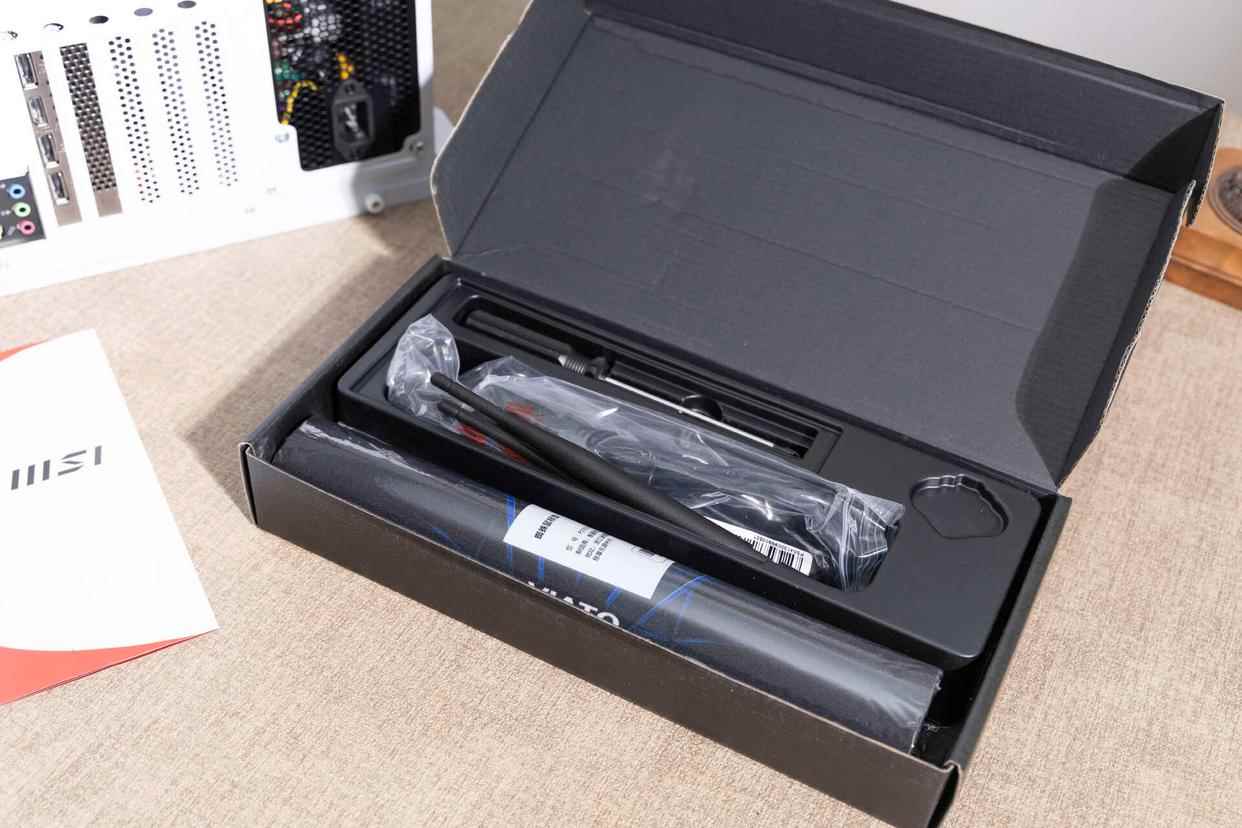 其他配件方面,包装中除了AEGIS宙斯盾S主机外,还提供了2个独立配件盒。配件盒收纳了主机中的类似WIFI天线,数据线和说明书等丰富配件。甚至还提供了螺丝刀,鼠标垫等周边产品,开箱仪式感拉满。