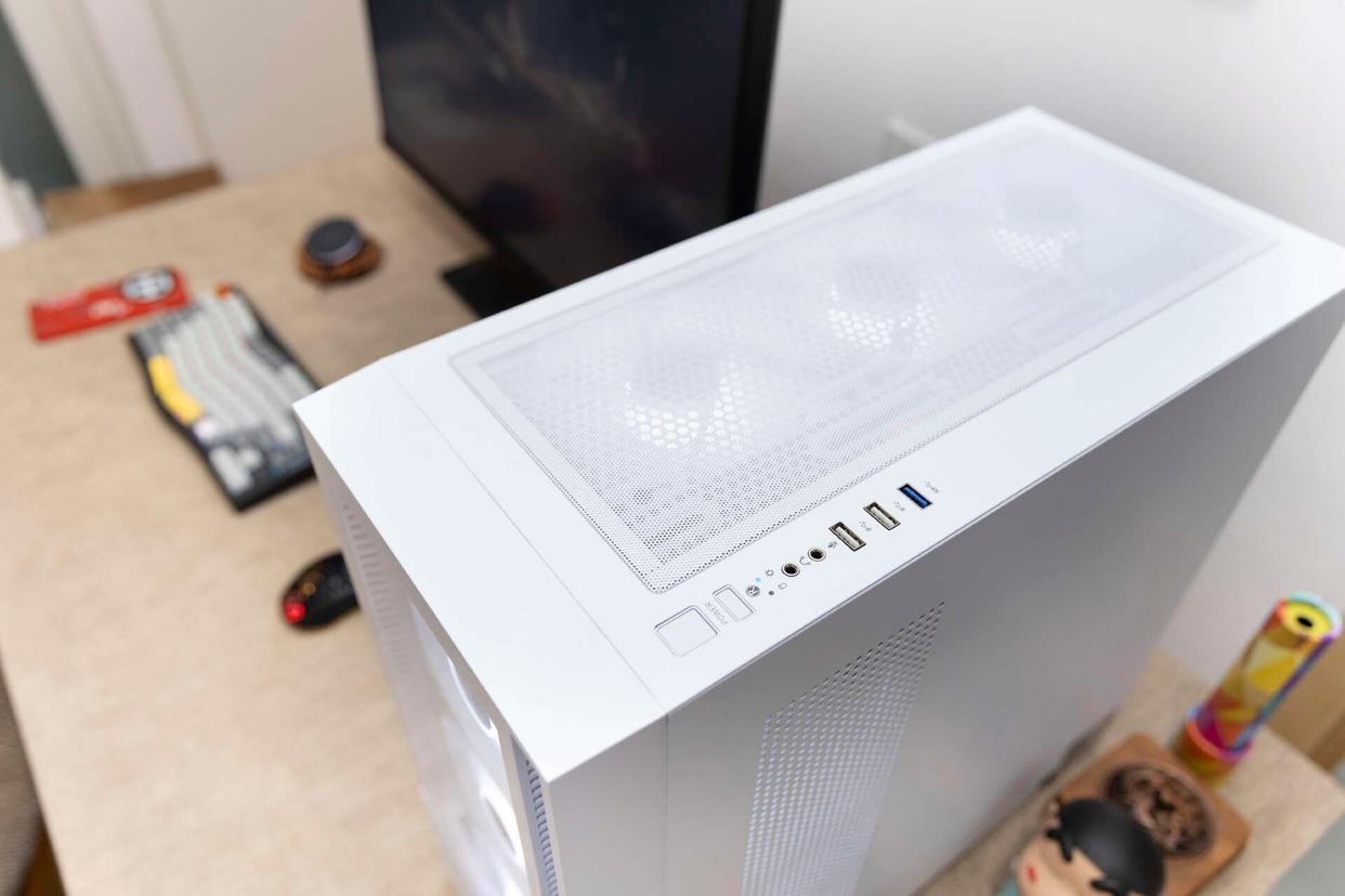 由于机箱顶部和右侧增加了大面积的散热栅格设计,在主机工作状态下,同样具备不错的透光效果。纯白的机箱也更易于融入办公场景和家居环境。