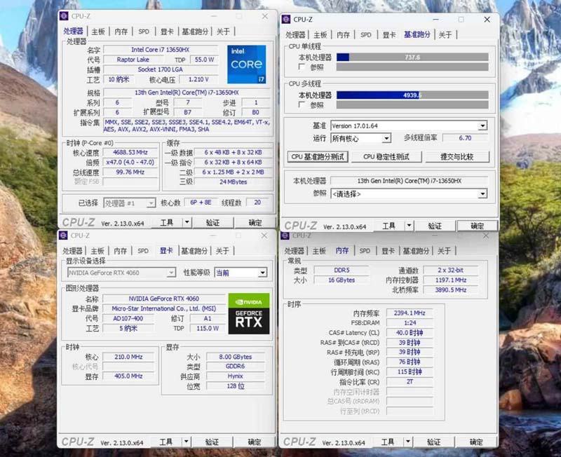 Intel 酷睿 i7 13650HX和微星4060万图师的组合,在鲁大师的跑分中,轻松拿下123W的综合得分。