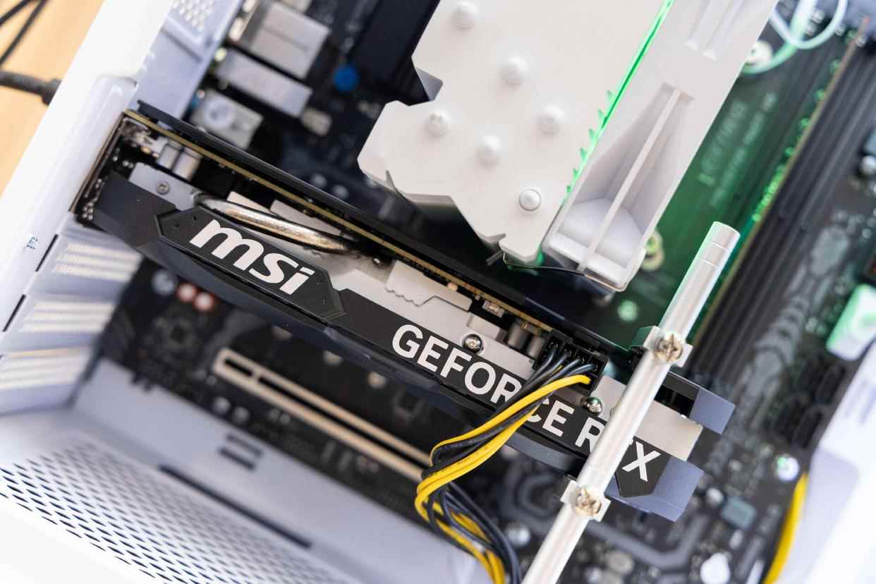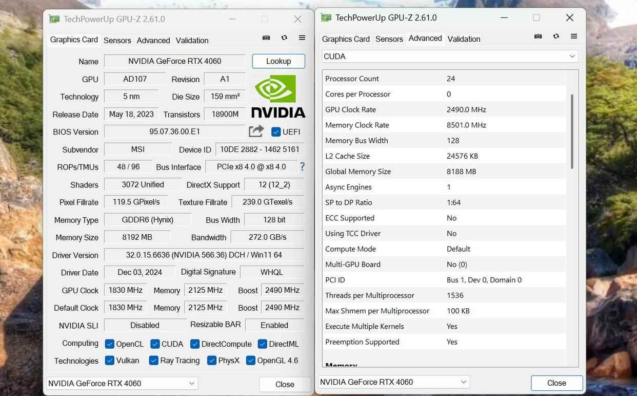 显卡方面,主机配置的是微星 GeForce RTX4060 VENTUS 2X BLACK 8G OC,配备 8GB GDDR6显存,功耗在约为115-120W,支持 DLSS3 技术,不管渲染视频还是游戏都能轻松胜任。