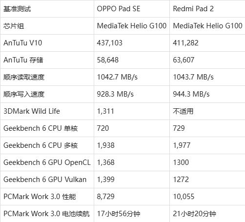 OPPO Pad SE与Redmi Pad 2平板电脑对比评测