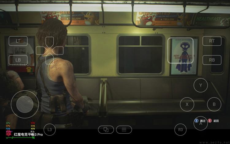 以为这就结束了?并没有,因为红魔电竞平板3 PRO与红魔游戏手机10S PRO+一样,也支持“PC模拟器”。我们用它试玩了《生化危机3重制版》,在720P画面设定下,它可以将画面选项拉满的这款PC游戏跑出平均30FPS以上。换句话说,红魔电竞平板3 PRO虽然不是Windows系统,但还真能在一定程度上作为x86掌机的“代餐”,而且续航和功耗怎么着都比那些x86掌机要好得多。