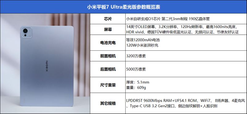 3.2K分辨率、120Hz高刷、4800Hz高频PWM调光,最高1600nits亮度,支持HDR10+,杜比视界,HDR vivid......这是小米平板首次采用的OLED顶规屏幕。