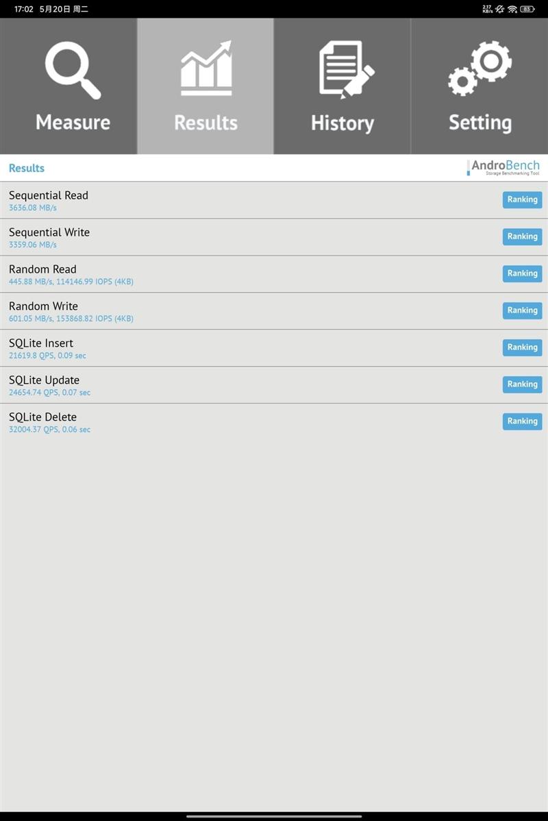 AndroBench闪存测试中,得益于UFS 4.0的强悍性能,Xiaomi Pad 7 Ultra的随机读写性能比上代产品都有所提高。