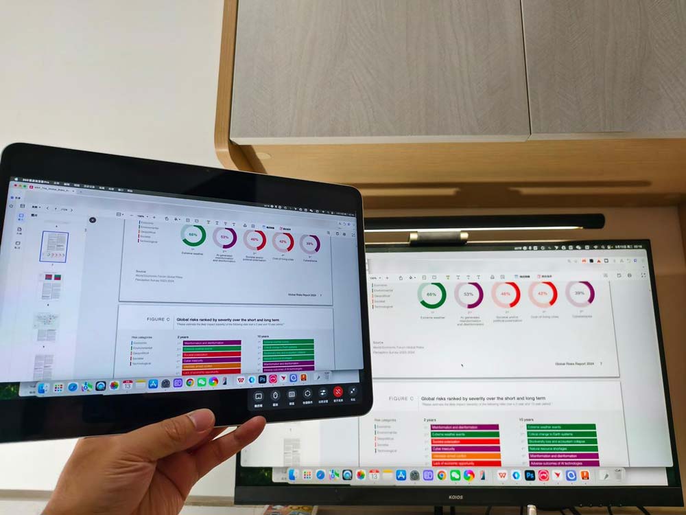 O+互联还有一个绝活,如果你的平板已经连上远控的Mac电脑,然后进行分屏操作,还可以把电脑上的文件,拖拽到平板上,轻松丝滑十分方便。