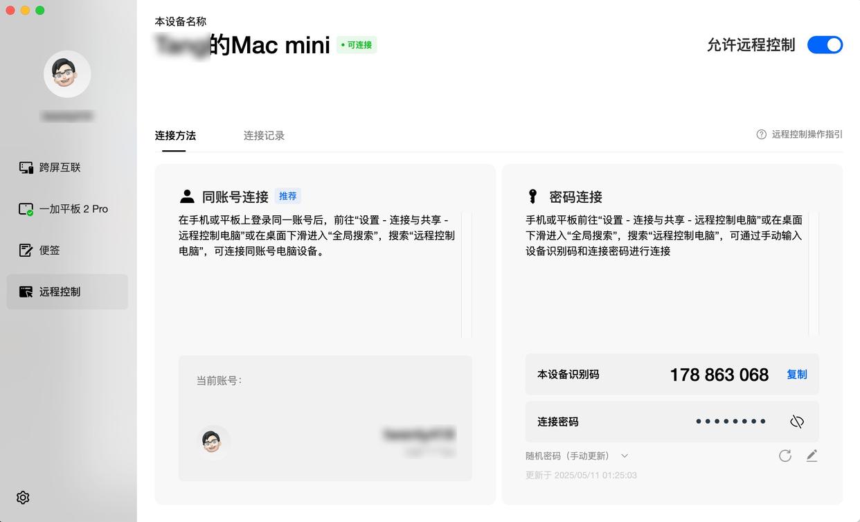 如果想要用远程操作Mac电脑的功能,用一加平板 2 Pro来远控PC,那么在Mac电脑上同样可以安装一个电脑版的O+互联应用。这样你就可以用平板来远程操控宿舍或者家里的电脑,万一刚好出门去图书馆自习了,背包里只有平板,也能应付一些轻度的学习、办公需求。譬如改改论文、看文献、看实习资料或者传文件给老师、同学等等,都十分实用,不用怕资料和文件不在身边,也不用来回在路上折腾了。