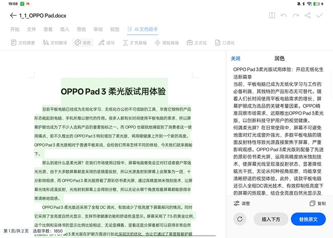 OPPO文档对于学生来讲是一款非常好用的APP,通过AI能为撰写不同类型风格的文章,并且提供摘要文档润色润色、续写、扩充、缩短等诸多功能。如果你使用的是OPPO手机,还可以将拍摄的课件一键流转到文章之中,瞬间生成图文并茂的笔记。