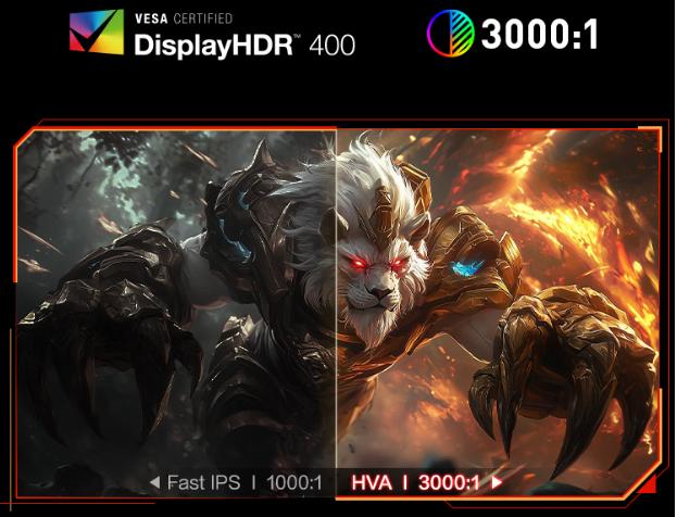 电竞显示器的亮度一定也不能差,开启HDR后,游戏画面能获得更宽的亮度范围、更优秀的色彩,以及更丰富的明暗细节,能够让你时刻掌握敌人动态。400-500 nits的亮度是基本,同价位选亮度更高的准没错。