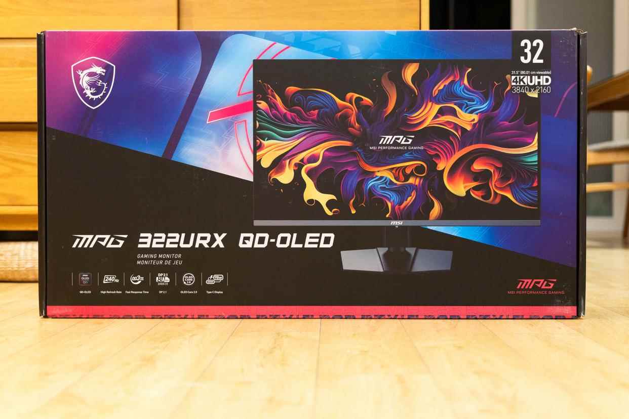 微星MPG 322URX QD-OLED采用了精美的彩盒包装,32寸的显示器包装盒体积还是相当可观的。在包装正面除了实物展示和特性标志外,还能看醒目的32英寸4K UHD分辨率的标识。