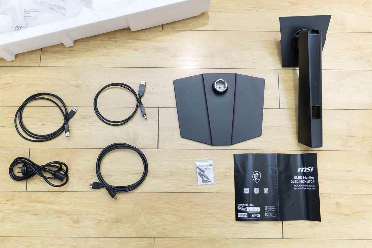 配件方面,除了显示器面板外,包装中还提供了经典人体工学支架,DP数据线,HDMI数据线,USB上传数据线,电源线,说明书质保卡和VESA转换螺丝等。