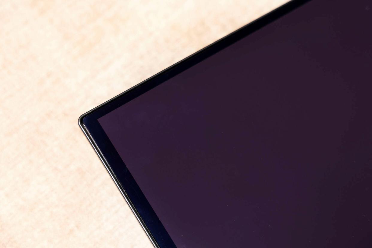 屏幕三边框架均为超窄边设计,折角边缘采用圆角工艺,缝隙细密,贴合紧致。