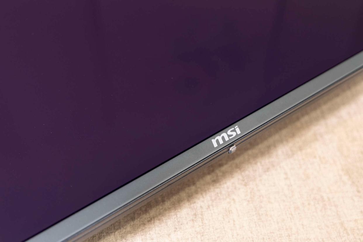 显示器底部框架中置了MSI的标识,在标识底部还设置了一枚状态指示灯。