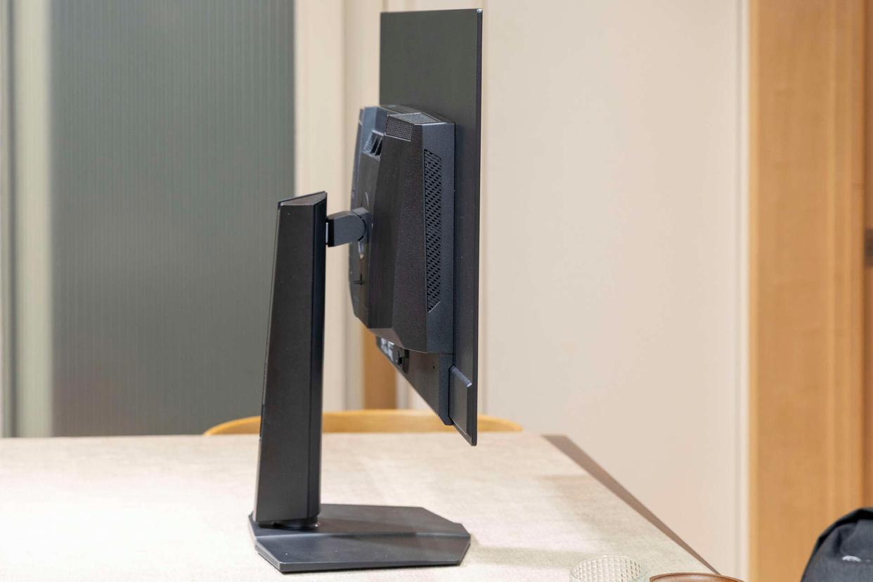 超薄的OLED面板配合纯平底座,不会占用太多桌面空间,加上支架臂重心靠后,可以最大限度的靠墙摆放,让桌面空间利用率大幅提升。