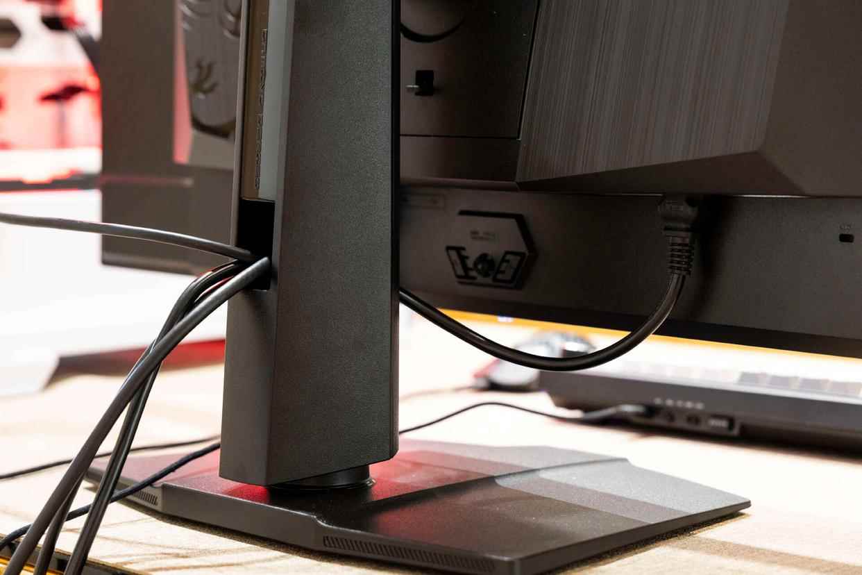 显示器的支架采用了人体工学设计,多边形棱柱造型非常有科技感,支架背部预留了大口径的导线槽,各种数据线都能快速梳理到桌面后方,让桌面变的更加的整洁。