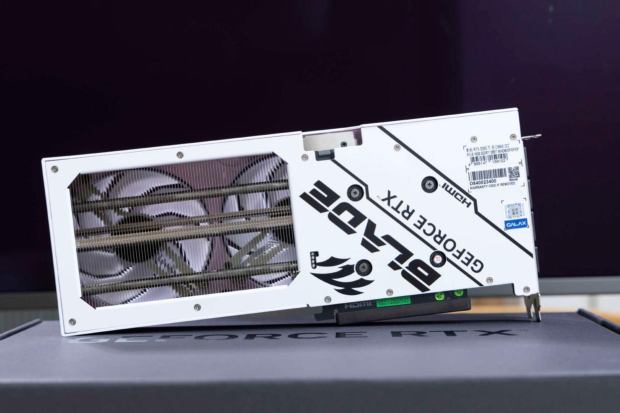 为了让显示器获得更加的显示效果,这里搭配的是影驰RTX5060Ti圣刃MAX OC 16G版本显卡,显示目前最为热门的甜点级显卡。这款显卡为双卡槽厚度,具体尺寸为316.5*140*40mm。