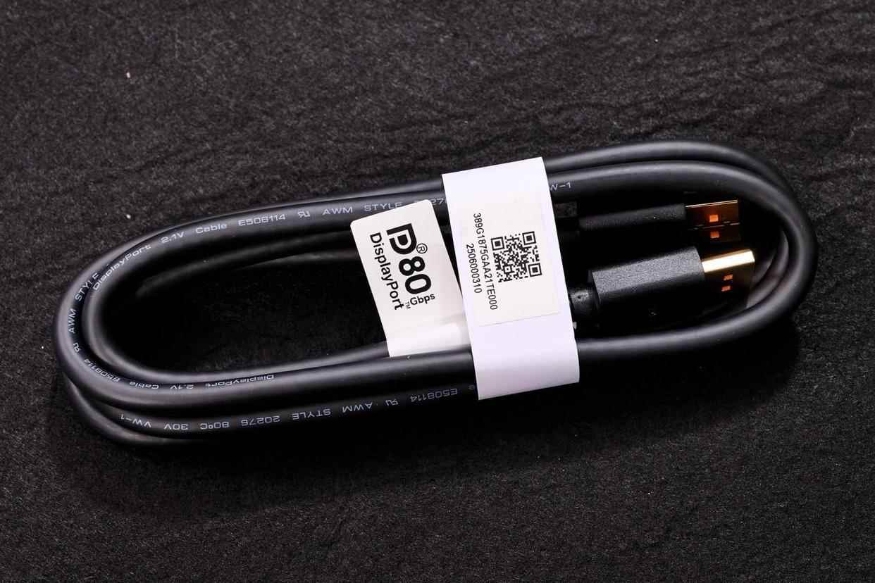 重要的是随机附赠的DP 2.1a线材,它符合DP80认证标准,能够支持高达80Gbps的最高带宽,无需借助DSC(显示流压缩),即可无缝提供真正的4K@240Hz体验。在接下来的测试中,我们将使用这条线材与具备DP 2.1a接口的RTX 5080显卡进行连接,以进行性能评估。