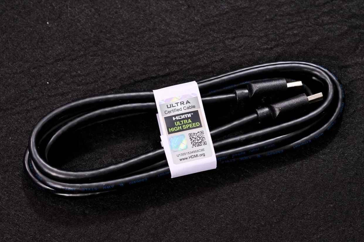 同样随机配送的HDMI 2.1a线材也通过了HDMI ULTRA HIGH SPEED认证,最高带宽为48Gbps,原生支持8K@60Hz。