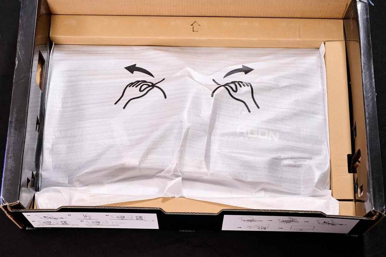AGON AG276UZD QD-OLED显示器的四周采用结构更为坚固的瓦楞纸和保护棉套进行周密保护。