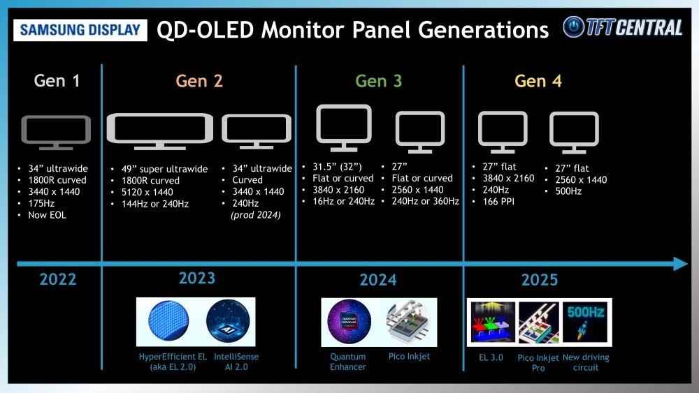 作为OLED显示器面板行业的佼佼者,三星显示(Samsung Display)在年初隆重推出了第四代QD-OLED(量子点有机发光二极管)面板,针对电视和显示器市场进行了多项技术革新。新推出的面板包括26.5英寸4K 240Hz、26.5英寸1440p 500Hz以及31.5英寸4K 120Hz等多种规格,进一步拓宽了从电竞到办公等领域的应用范围。