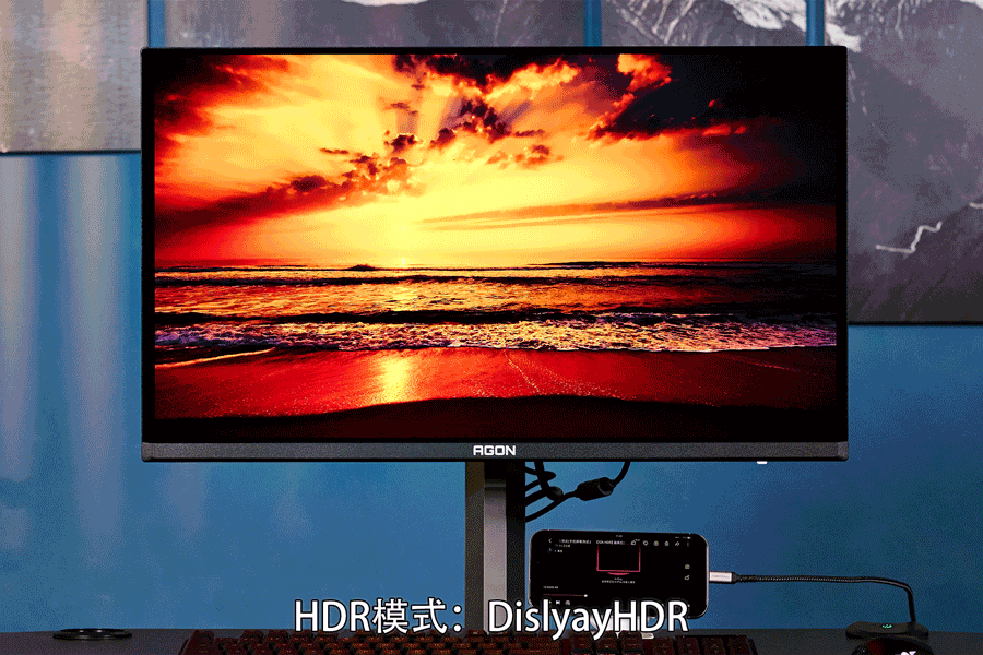 以上为同一台iPhone 16 PRO利用Type-C线材播放HDR在线视频时,显示器牌不同HDR模式的GIF动画。大家可以参考一下同一个画面中的亮部与暗部上的变化,当然GIF的压缩有点大,画质有点失真,AGON AG276UZD QD-OLED显示器的实际显示效果远超GIF动图上的表现。