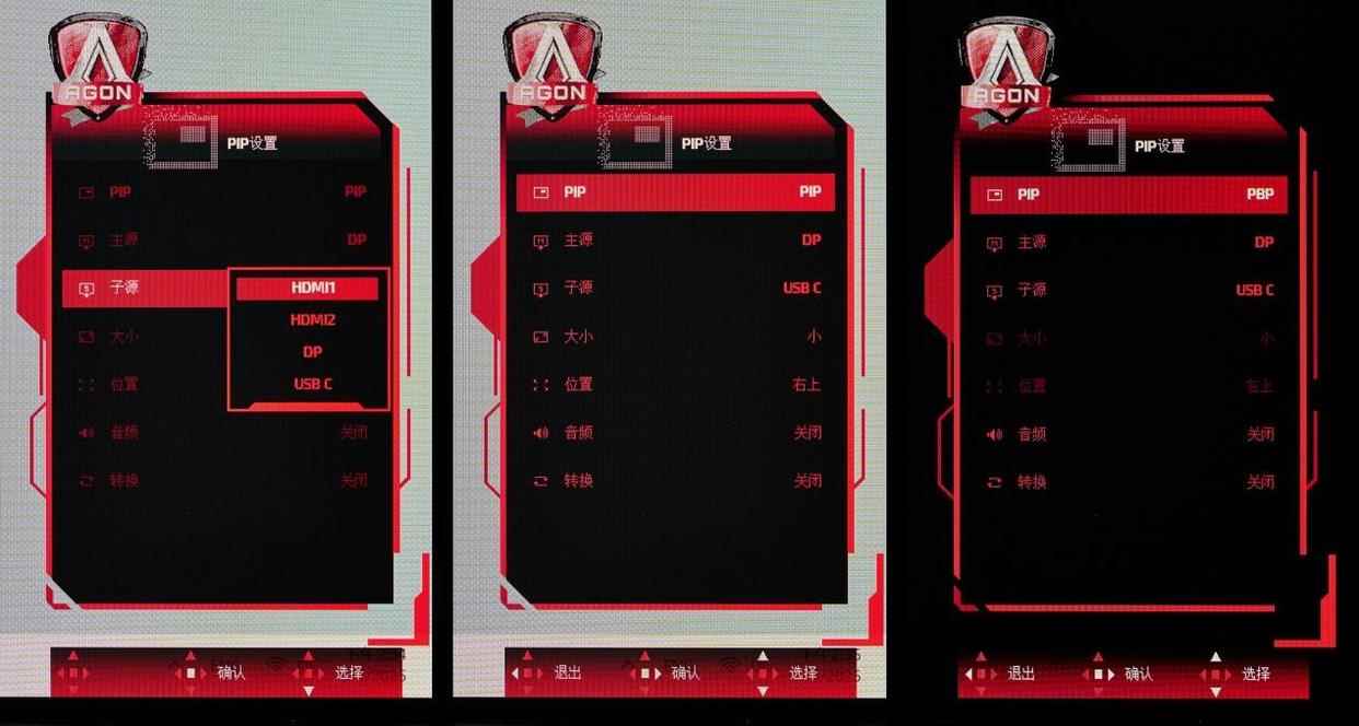 同时,AGON AG276UZD QD-OLED显示器支持PBP双画面和PIP画中画显示功能,能够同时显示来自两台电脑或其他信号源的两路信号。此外,该显示器配备了KVM功能,用户仅需一套键盘鼠标即可在不同信号源之间轻松切换,既方便又实用。