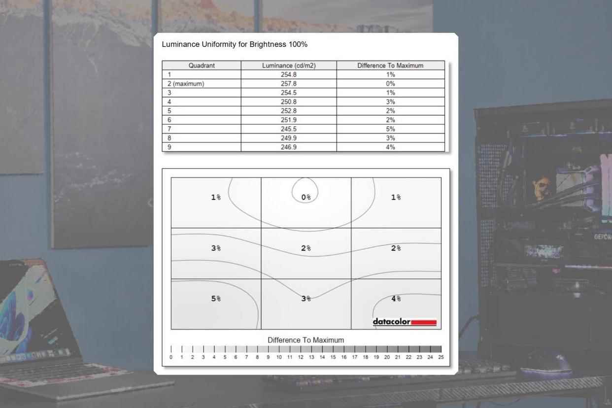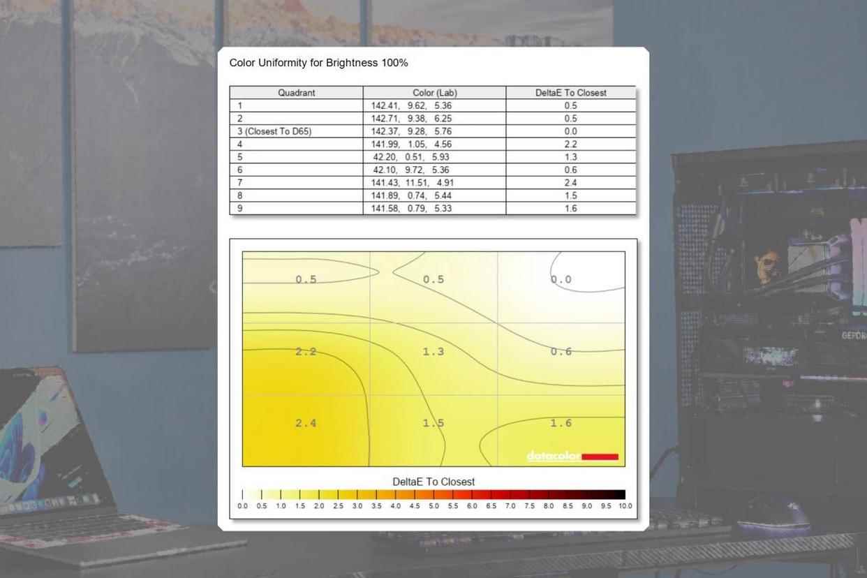 在 100% 亮度设置下,AGON AG276UZD显示器的最大色彩差异为 2.4,亮度差异为 5%。这种均匀性表现不仅为用户带来了更舒适的视觉体验,也进一步提升了显示器在专业工作中的稳定性。