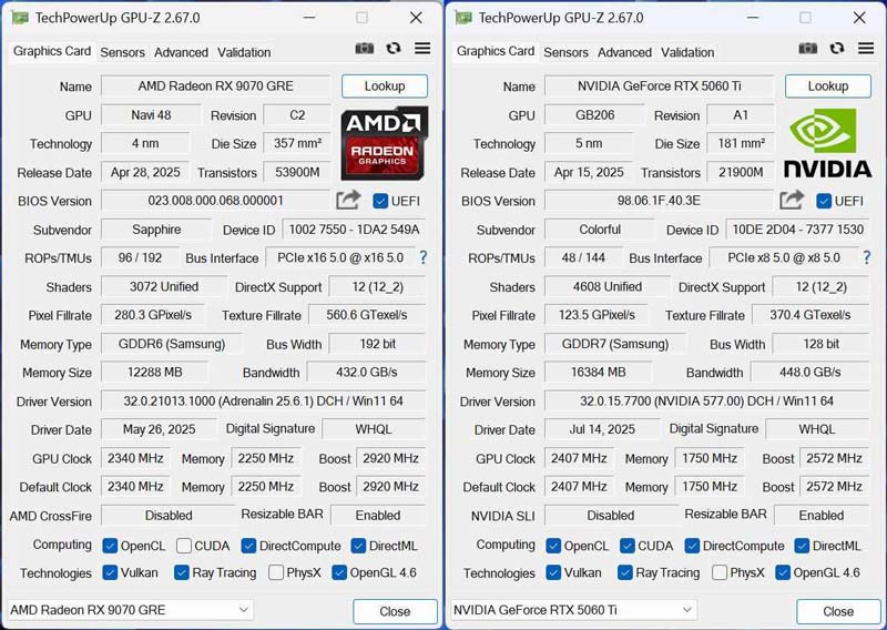 RX 9070 GRE和RTX 5060 Ti 16GB显卡对比测评