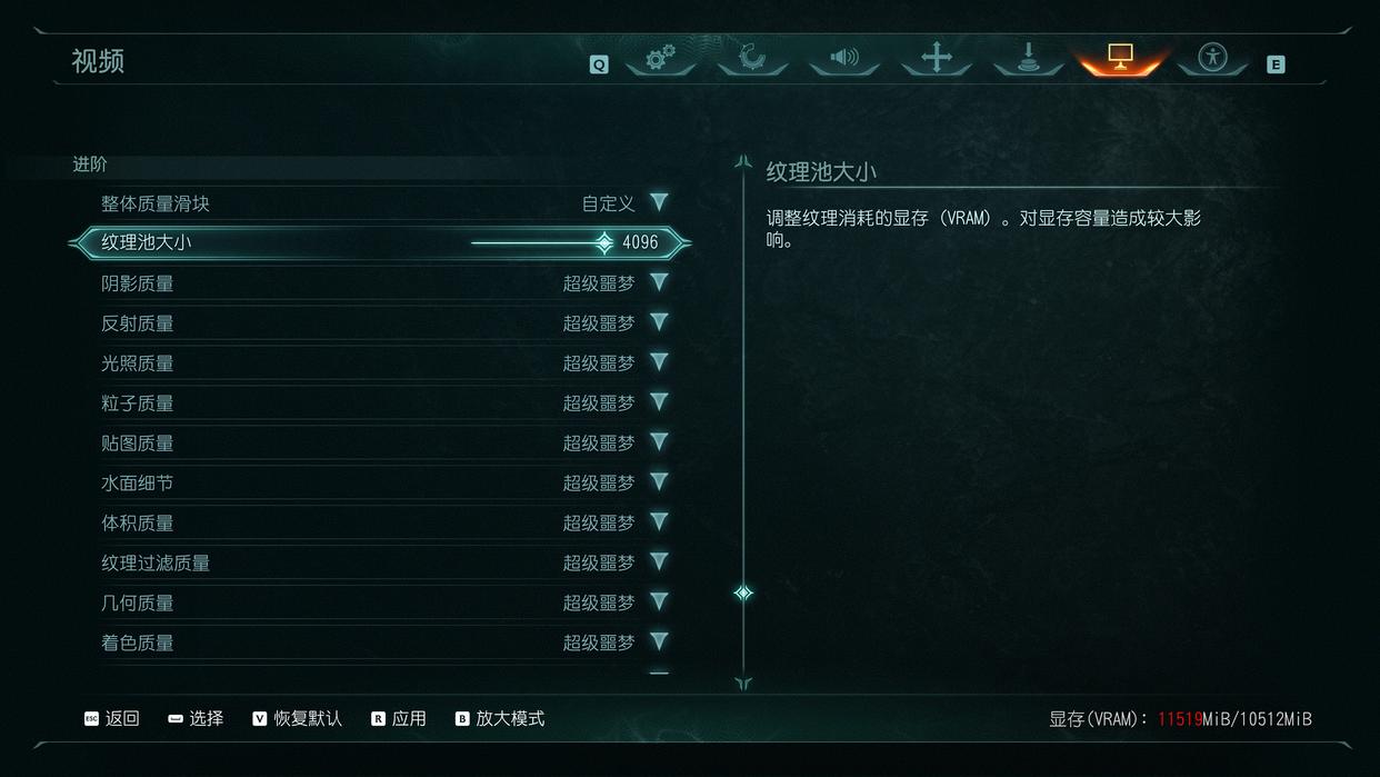 《毁灭战士:黑暗时代》2160P预设超级噩梦画质+纹理池大小4096