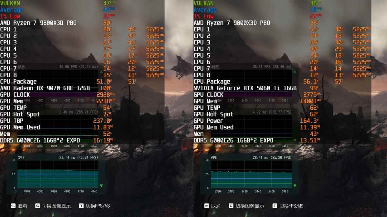 RX 9070 GRE和RTX 5060 Ti 16GB显卡对比测评