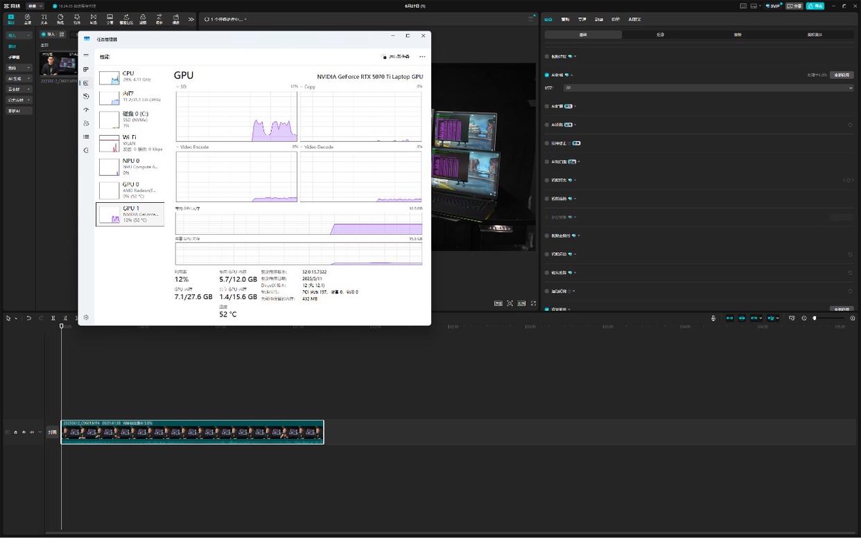 AI与性能的结合同样是绝影18 锐龙版作为生产力工具的核心价值。在剪映里,我拖了一段约5分钟的视频做智能抠像,过去得逐帧描边忙两天。现在?点一下“智能抠像”,我去泡了杯咖啡,也就不到3分钟的时间,结果回来的时候人物边缘已经干干净净,连几根飞扬的头发丝都完美保留。