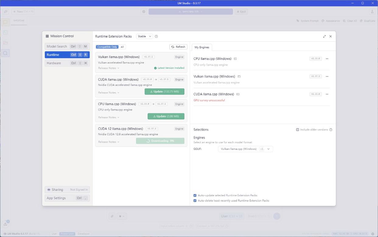 另外,借助兼容的驱动,LM Studio 可设置为CUDA 12.8 运行时,从而借助RTX 50系显卡的性能,显著缩短模型加载时间并提高整体性能。