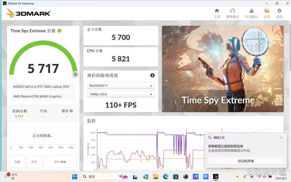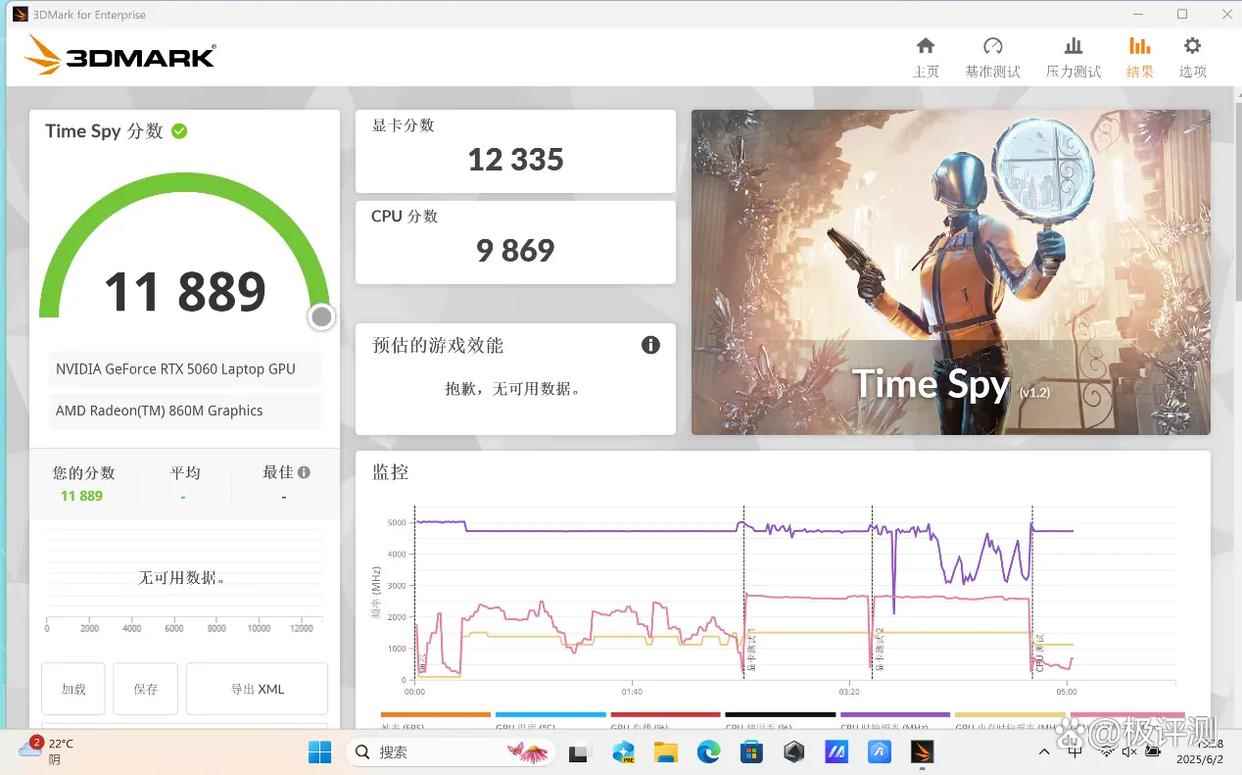 在体现DirectX 12游戏性能的3DMark Time Spy Extreme和Time Spy项目测试中,天选Air 2025成绩分别为5717(显卡得分5700)和11889(显卡得分12335)。