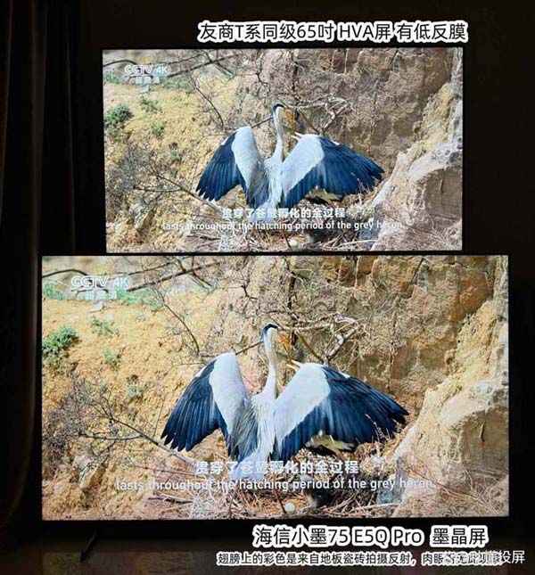 以下是海信E5Q Pro和友商同级T7L Pro(下方使用友商同级代替)实际拍摄对比,都为标准原生模式,未调整任何参数。