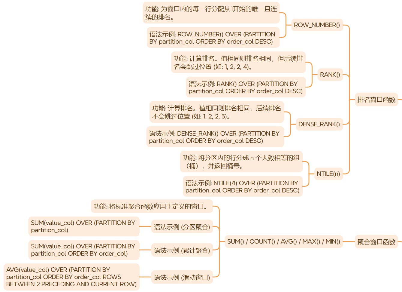 所有窗口函数都遵循一个核心的 OVER() 子句结构,它定义了计算的上下文——“窗口”。