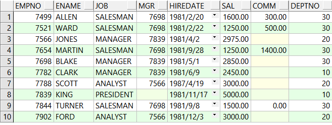 drop table EMP_TAR; drop table emp_source; create table emp_source as SELECT e.*,SYSDATE create_date,SYSDATE last_update_date from emp e; INSERT INTO emp_source(empno,ename,hiredate,create_date,last_update_date) VALUES(1111,'lisa',TRUNC(SYSDATE)-1,TRUNC(SYSDATE)-1,TRUNC(SYSDATE)-1); UPDATE emp_source SET sal=10000,last_update_date=TRUNC(SYSDATE)-1 WHERE empno=7788; commit; SELECT * FROM emp_source;