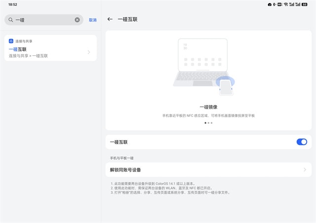 而手机和平板之间的文件传输也更方面,只需要“一碰”就能传输,无论是会议流转、文件流转还是屏幕镜像,都能使用搭载ColorOS 14的手机“一碰”搞定,生态互联体验更好。