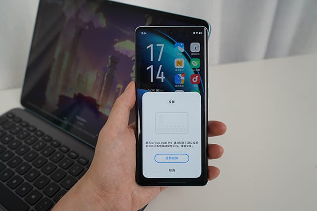 vivo Pad3 Pro实现了平板靠近手机后,就自动连接的通信共享技术。