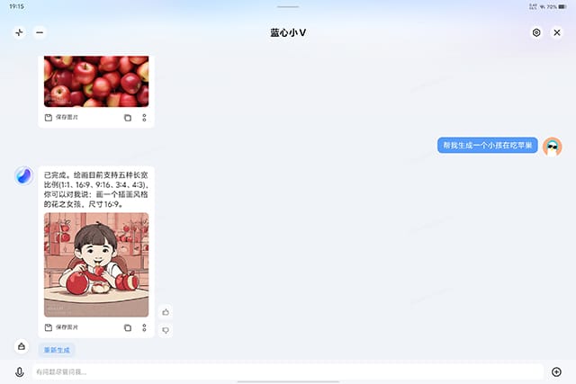 智能作图方面,蓝心小V也可以文生图、图生图,包括消除图片中的路人等等,这些在最新手机上线的炫酷功能,vivo Pad3 Pro也同样支持。